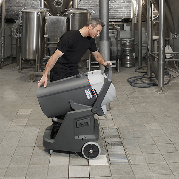 Door het verplaatsen van het gewicht, als je de container kantelt, zorgt het Ergo Kantelsysteem ervoor dat je een volledig gevulde container met vloeistoffen kunt legen zonder veel inspanning