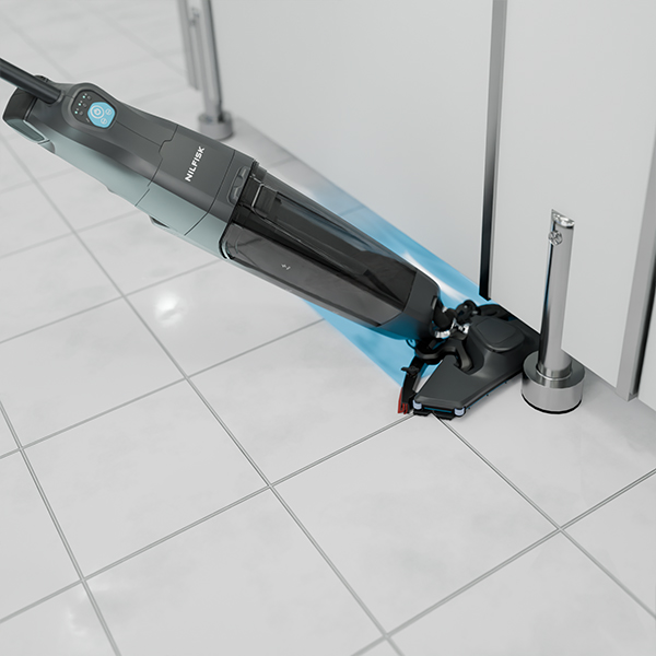 Onze eerste micro schrobzuigmachine, hygiënischer dan een dweil en met de grootte van een steelstofzuiger, reinigt gemakkelijk alle moeilijk bereikbare plekken – overvolle ruimtes, onhandige hoeken en randen, smalle openingen en rond obstakels.