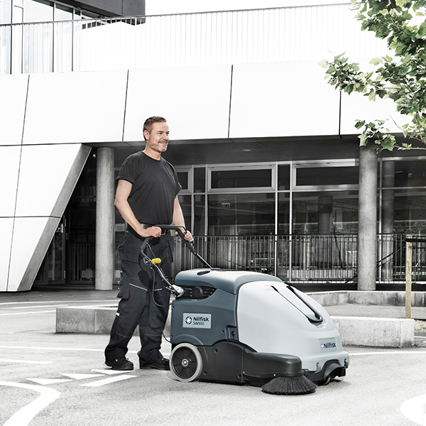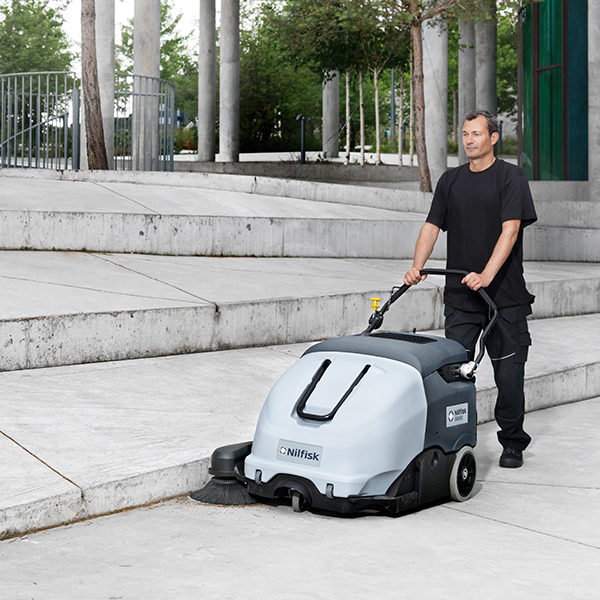 De Nilfisk SW900 achterloop veegmachine kan zowel binnen als buiten worden gebruikt voor stofvrij vegen. De dagelijkse productiviteit zal toenemen door nieuwe belangrijke voordelen: volledige controle voor de gebruiker, verbeterde ergonomie waaronder een vuilcontainer met wielen en betere reinigingsprestaties.